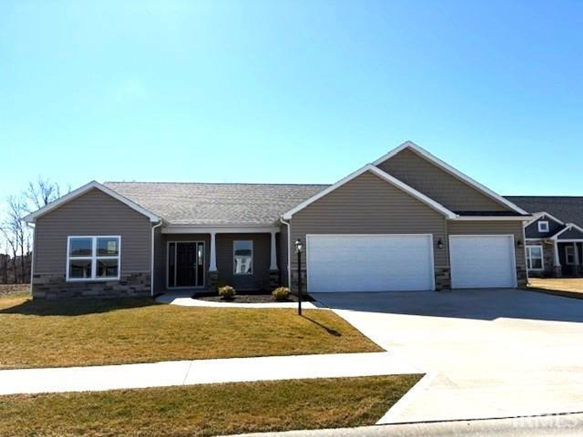 The MISSOURI built by MAJESTIC HOMES in Southwest Allen County Schools. This split bedroom ranch home on a cul-de-sac lot backs to a nice wind row of trees. Covered Front Porch walking into the foyer with LVP flooring that opens to the Office/Den with Glass french doors. Open Kitchen, Dining area and Great Room. A very large mud room/laundry rooms with lockers, a fantastic spacious primary bedroom and bath. Screened in Room and Covered porch, 3-car garage. A few of the many features in this home are soft close doors and drawers, tile backsplash, over/under cabinet lighting, quartz counter tops with walk-in pantry.